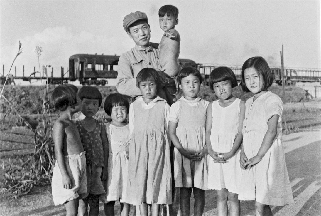 38军战斗英雄郭忠田与朝鲜孤儿。(摄影:黄谷柳)