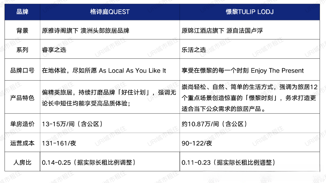 在这次合资中,雅诗阁与锦江酒店在各自品牌矩阵中,拿出原来就具一定长短住场景基因的品牌放进合资公司,联手进行合作重塑——其中一个是雅诗阁中国旗下,在澳洲已是头部服务公寓品牌,足迹遍及160+城市与地区的格诗庭(QUEST);另一个是锦江酒店(中国区)旗下,源自法国卢浮的憬黎(TULIP LODJ)。