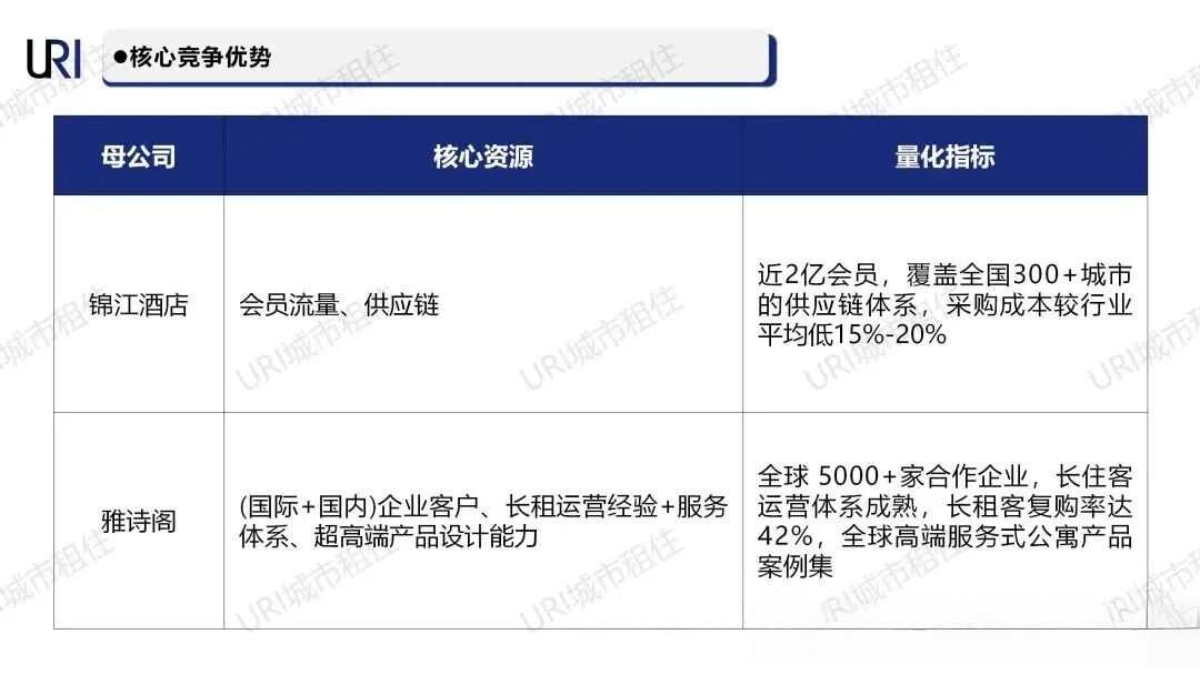 雅诗阁是当仁不让的全球服务式公寓龙头,拥有丰富的高端中长住运营经营还能提供品牌溢价、甚至是来自积淀多年,来自世界各地的自来水客源。另一方面,更懂国内市场的锦江酒店,则依托强大的供应链和工程筹建经验,更好地完成体验、产品与造价的打磨、定位与平衡。